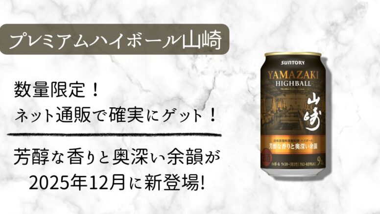 2025年12月23日からプレミアムハイボール山崎〈芳醇な香りと奥深い余韻〉が発売決定!Amazonや楽天市場にて発売前から予約殺到で数量限定の人気商品なので要チェックです◎