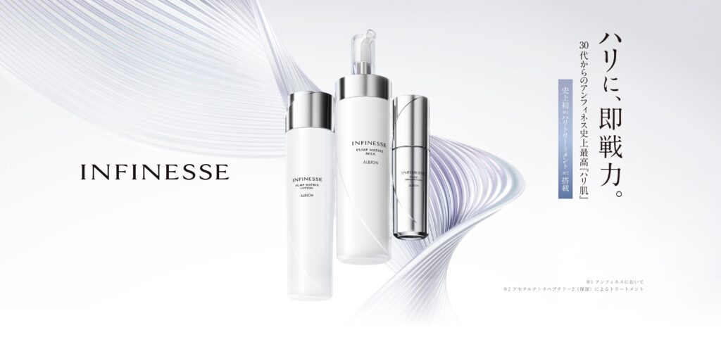 年齢とともに変化する肌にアプローチしていくエイジングケア乳液『INFINESSE(アンフィネス)』についてレビューしていきます。