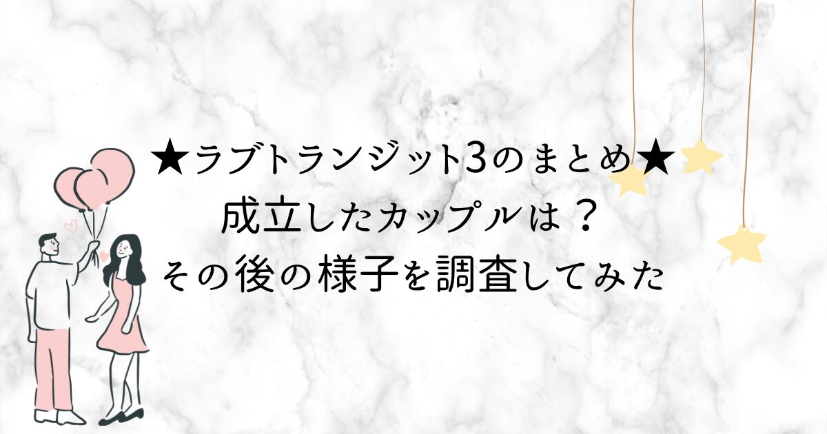 ラブトランジットシーズン3に出演していたメンバーのその後はどうなってるのか現在の様子を調査したのでまとめていきます!